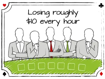 (For simplicity, I assumed a $10 bettor playing 100 hands per hour. If you bet more, you’ll lose more; if you play fewer than 100 hands per hour, you’ll lose less.)
