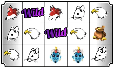 Wild symbols are matches for any symbol, usually excluding scatter symbols or bonus symbols. Let’s say that in the above example, the mouse on the third reel was a wild symbol instead, as follows:
